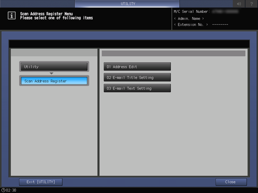 1. Follow the procedure on Registering a Destination and a Subject and a Message of E-mail to display the Scan Address Register Menu screen.