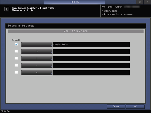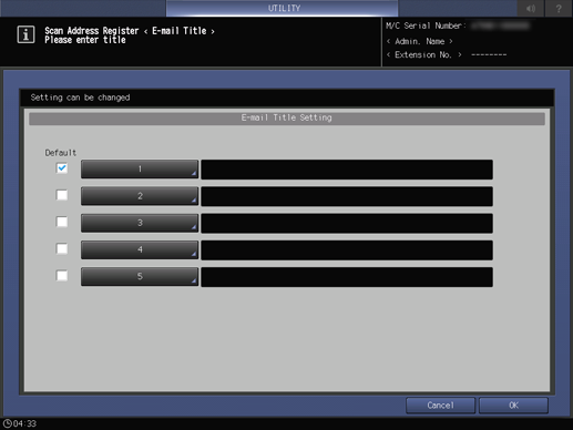 You can register or change an E-mail subject. Sending E-mail is made easy by registering frequently-used subjects.