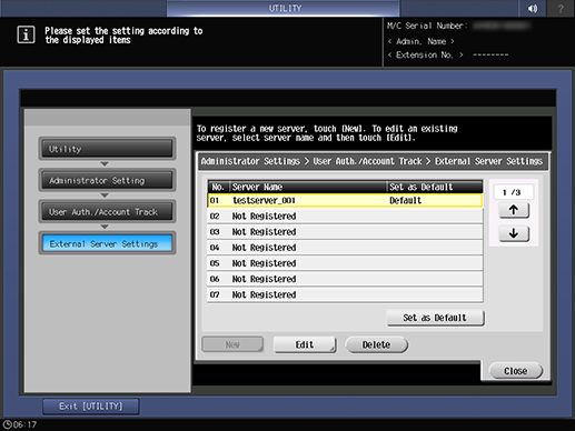 Select a line on the External Server Setting screen and press Edit to edit data for the registered external server.