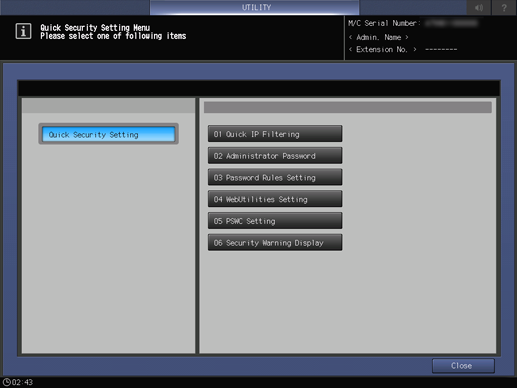 This setting is the same as that of Quick Security Setting - WebUtilities Setting accessed from the UTILITY screen.