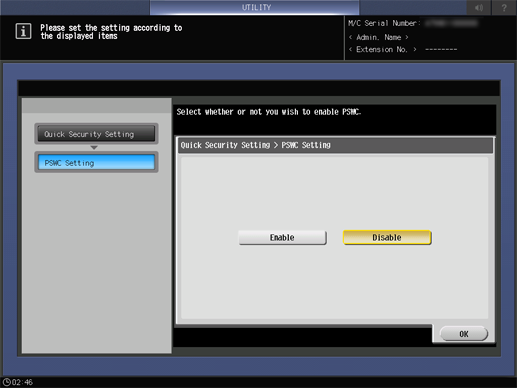This setting is the same as that of Quick Security Setting - Web Setting accessed from the UTILITY screen.
