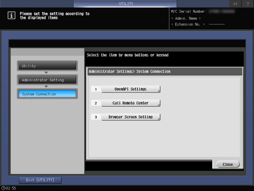 Press System Connection on the Administrator Setting Menu screen, and then press OpenAPI Settings.