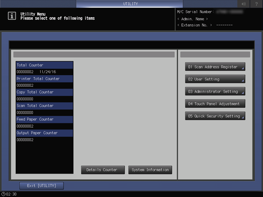 Press Utility/Counter on the control panel.