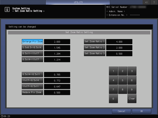 2. Press System Setting on the User Setting Menu screen, and then press Set Zoom Ratio Setting.