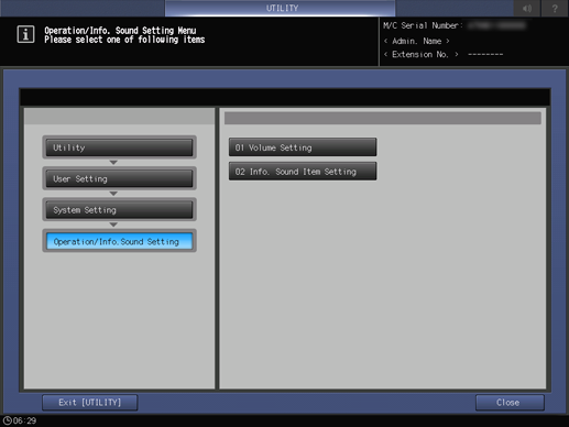In either case, the screen returns to the Operation/Info. Sound Setting Menu screen.