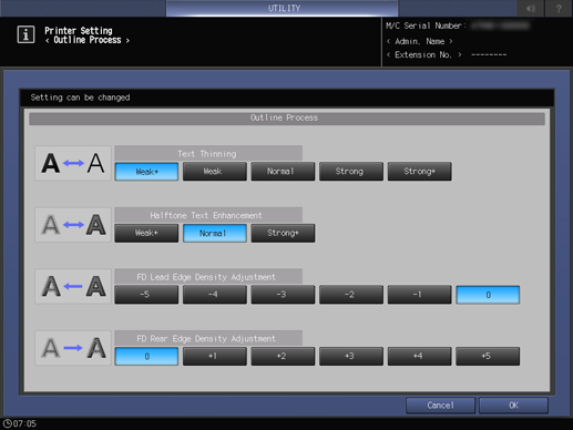 Text thinning, Halftone Text Enhancement, FD Lead Edge Density Adjustment, FD Rear Edge Density Adjustment