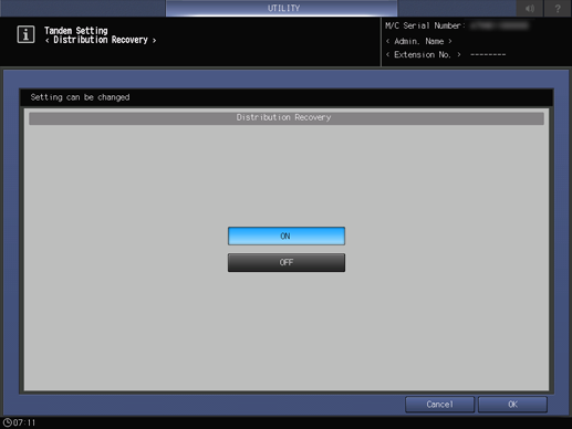 Press Tandem Setting on the User Setting Menu screen, then press Distribution Recovery.