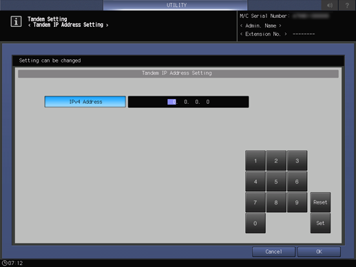 Press Tandem Setting on the User Setting Menu screen, then press Tandem IP Address Setting.