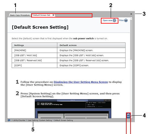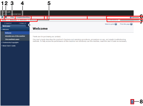 | Click this icon to display the User’s Guide menu in the pop-up window. You can click a menu name to jump to the target menu. |