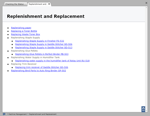 You can click the icon or link at the top of the screen to move to another page or search within the User’s Guide from the search field.
