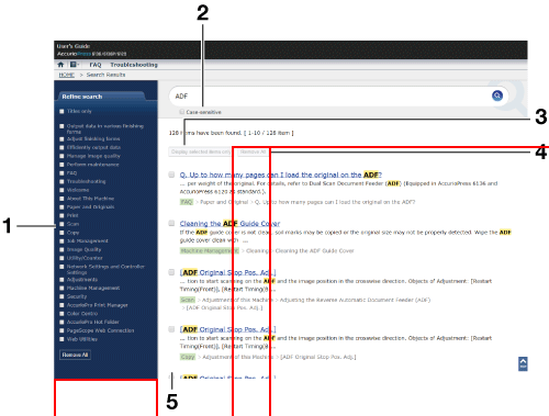 3 | Display selected items only | Click this to display only the items selected in the Refine check box. If you close the Web browser or carry out another search using another keyword, the display is reset. |