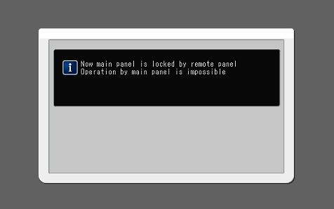 supplementary explanationWhen the main body is in a panel lock state and any operations are performed on the touch panel or control panel, the touch panel displays the screen which informs you that the panel is locked. No operation can be performed while this screen is displayed. After the screen is displayed for 3 seconds, the touch panel of the main body is turned off again and operations can be performed on the Real-time Remote Panel.
