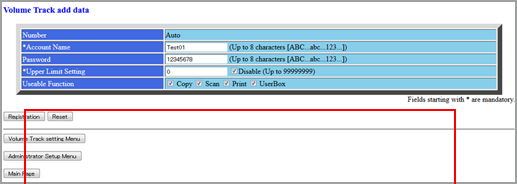 - If the account track authentication system of the machine has been set to Account Name & Password, always register an account. If a duplicate account name exists, an error message is displayed to show unavailability.