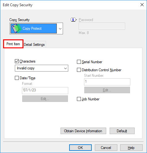 1. In the [Stamp/Composition] tab, select the [Copy Security] check box, and then select [Password Copy].