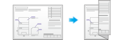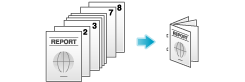 Multiple pages (2 pages, 4 pages, or 8 pages) are reduced and printed on the same side of one sheet.