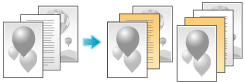 Paper different from other pages is inserted into the specified pages. You can insert a color paper and a thick paper. Also, you can print or not print the original data on the inserted sheet.