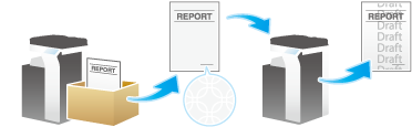 [Recall Overlay Image] | Specify which side of the paper to compose the overlay image, and select an overlay image to be composed. Check the density, composition method, and preview of overlay image if necessary. If you set [Apply on Back], the image on the front side is composed on the back side of paper. |