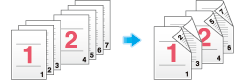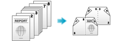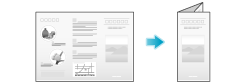 The pages in the original data are arranged and spread out in booklet format and printed on both sides of sheets. You can also specify the binding position, or insert front and back covers.