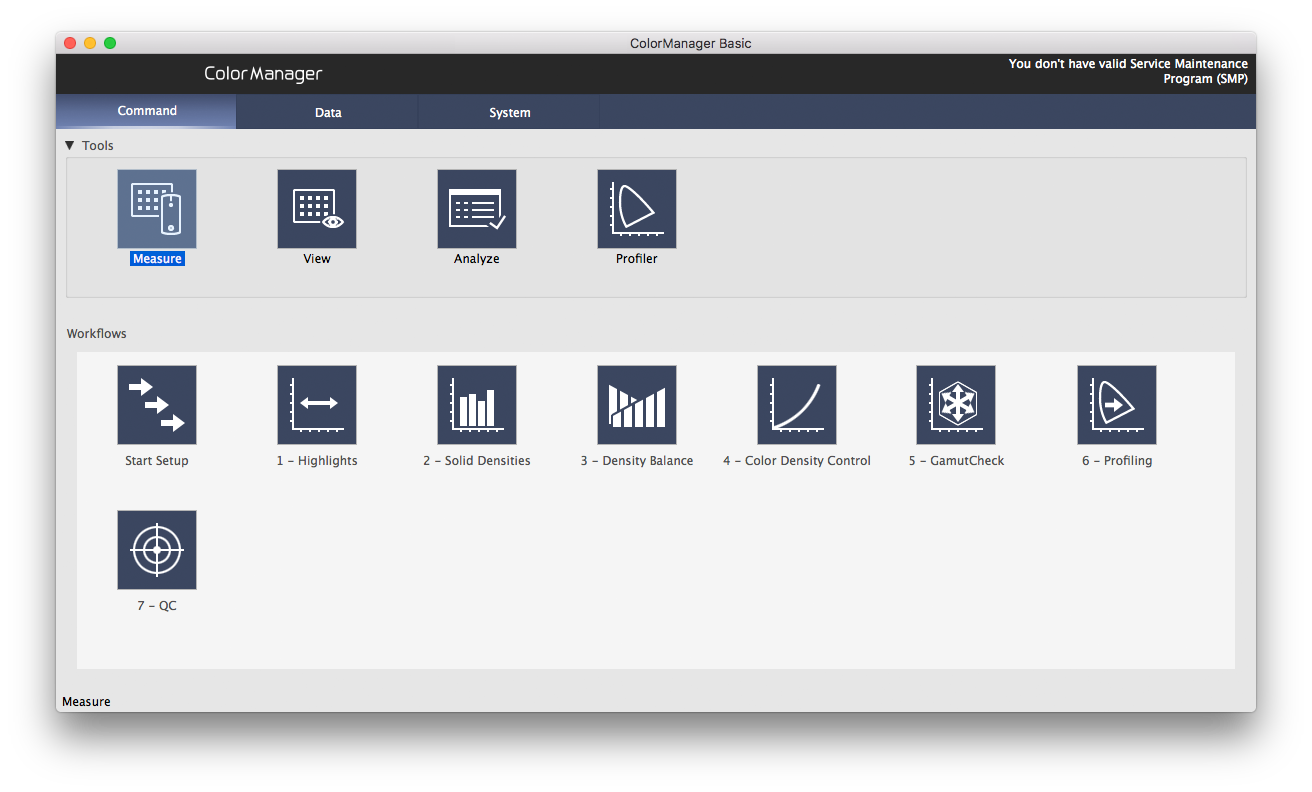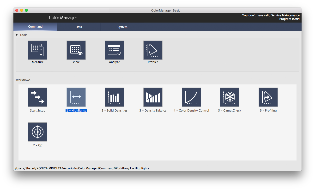 This is the command center of Color Manager. From here you start both the tools for individual tasks and the workflows of the active working folder for your routine tasks.