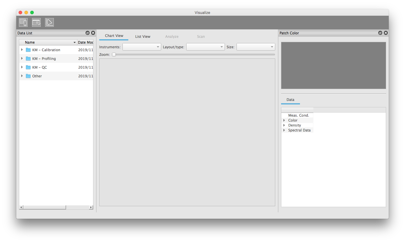 The "View" tool is very similar to the "Measure" tool. It opens the measurement window for viewing existing measurement data without establishing a connection to a measuring instrument.