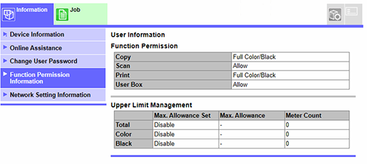 Web Connection - [Information] - [Information] - [Function Permission Information]
