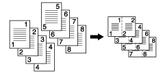 [Total Counter] defines the contents combined in 1 page as the combined original. For example, when original data consists of 8 pages, 2 original pages are combined to a single sheet in 2 in 1 printing; therefore, the [2in1] count is set to 4. Also, 4 original pages are combined to a single sheet in 4 in 1 printing; therefore, the [4in1] count is set to 2.