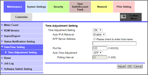 Web Connection - [Maintenance] - [Date/Time Setting]
