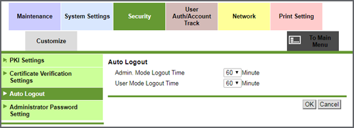 Set the time to automatically log out when you perform no operation for the specified time after logging in to Web Connection.
