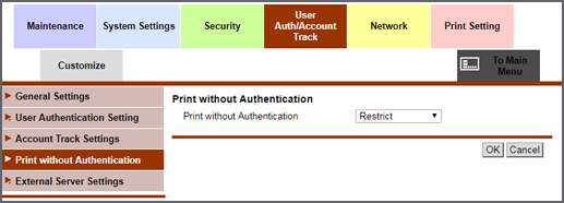 Web Connection - [User Auth/Account Track] - [Print without Authentication]