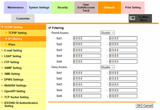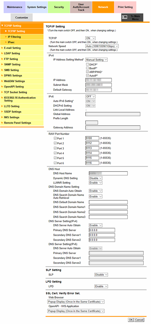 Web Connection - [Network] - [TCP/IP Setting]