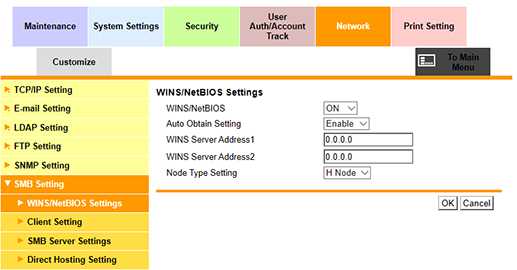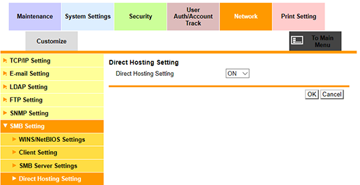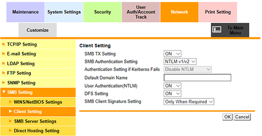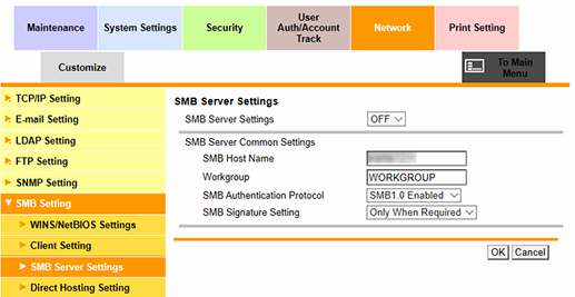 Configure the client setting required to perform SMB (Server Message Block) transmission, or the setting required to use this system as an SMB server.