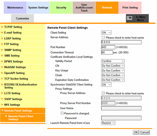Web Connection - [Network] - [Remote Panel Settings]