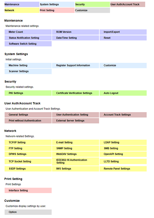 All of the functions in this user's guide are classified according to the category. By selecting the check box for the desired category, you can narrow the search range. Multiple choices are possible.