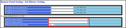 Screen access | Web Utilities - [Machine Manager Setting] - [Remote Panel Setting/Job History Setting] | |||