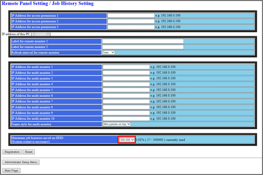 Setting items | [Maximam job histories saved on HDD(System restart is necessary)] | ||