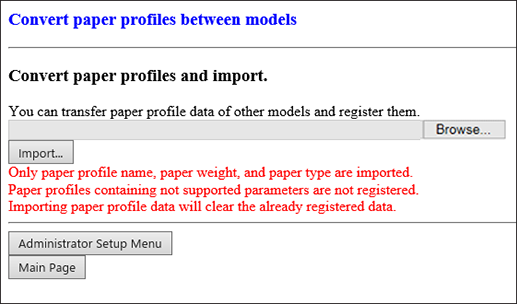 Web Utilities - [Machine Manager Setting] - [Convert paper profiles between models]