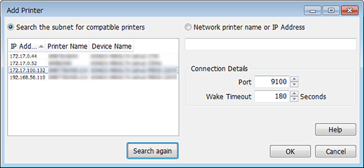 Setting items | [Search the subnet for compatible printers] | Searches for the target printer on the same network. | |