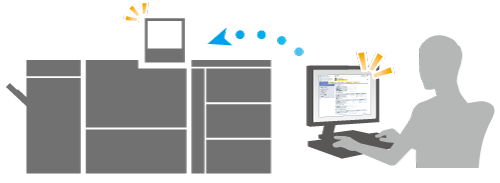 Use a PC browser and access the image controller via the network to check the status of the system and configure various settings for remote operation from the Web Connection.