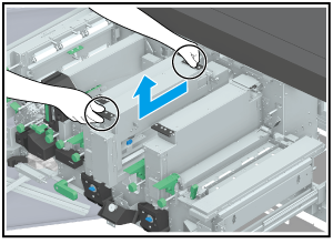 When removing, hold the black handles and lift the unit in the direction of the arrow as shown in the figure.