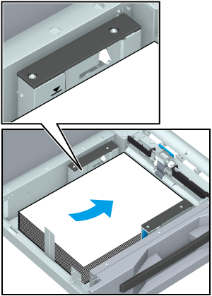 When the perfect binding book is right-aligned, load the cover facing the front side up and the cover top toward the front side of the tray. The trimming part is on the left side of the loaded cover paper.