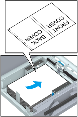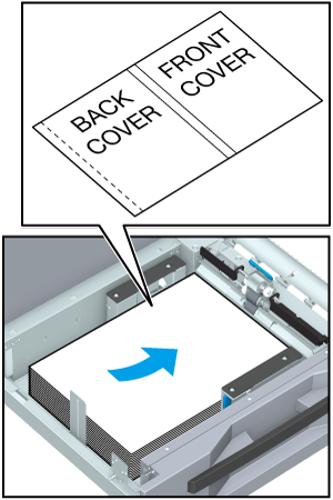 When the perfect binding book is left-aligned, load the cover facing the front side up and the cover top toward the back side of the tray. The trimming part is on the left side of the loaded cover paper.