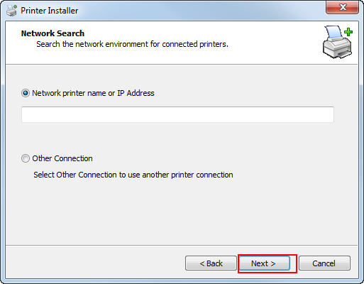 If you select [Network printer name or IP Address], click [Next] and proceed to Step 6.