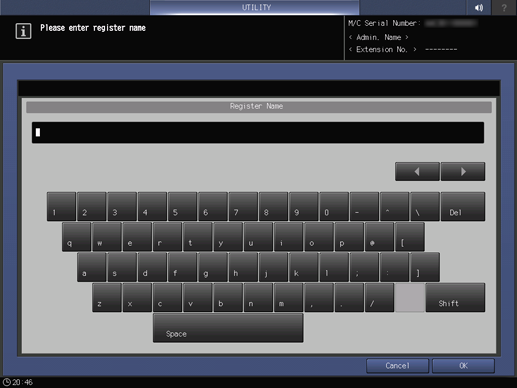 [Cancel] | Deletes the entered text and closes the text entry screen. |
