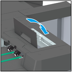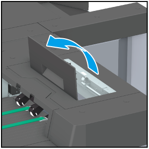 You cannot open the Clamp section upper door while the saddle stitcher is idling. Make sure to come out of the idling state before opening it.