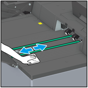 Apply some cleaning alcohol to a soft cloth and wipe clean the Conveyance belt.