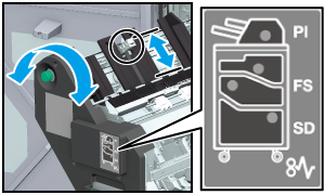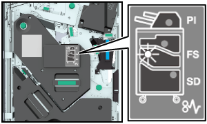 > Troubleshooting > Machine lights Blinking or On > The Jam position display of Finisher FS-541 is Blinking