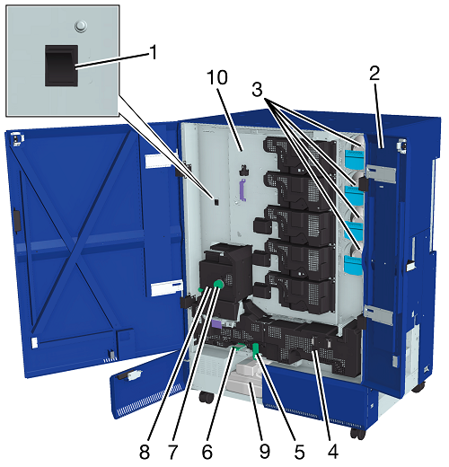 1 | Main power switch | The customer engineer switches OFF/ON. Do not turn off under normal circumstances. |
