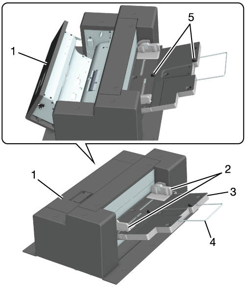 2 | Side guides (2 locations) | It is run alongside both sides of the set paper. |