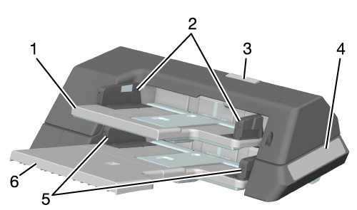 3 | Upper unit release lever | Pull up when clearing a paper jam. Slide the upper unit of the open PostInserter PI-502 to the left and remove the jammed paper. |