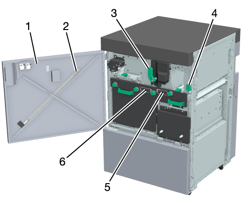 1 | Intelligent Quality Optimizer front door | When clearing a paper jam, open the door and remove the paper. |